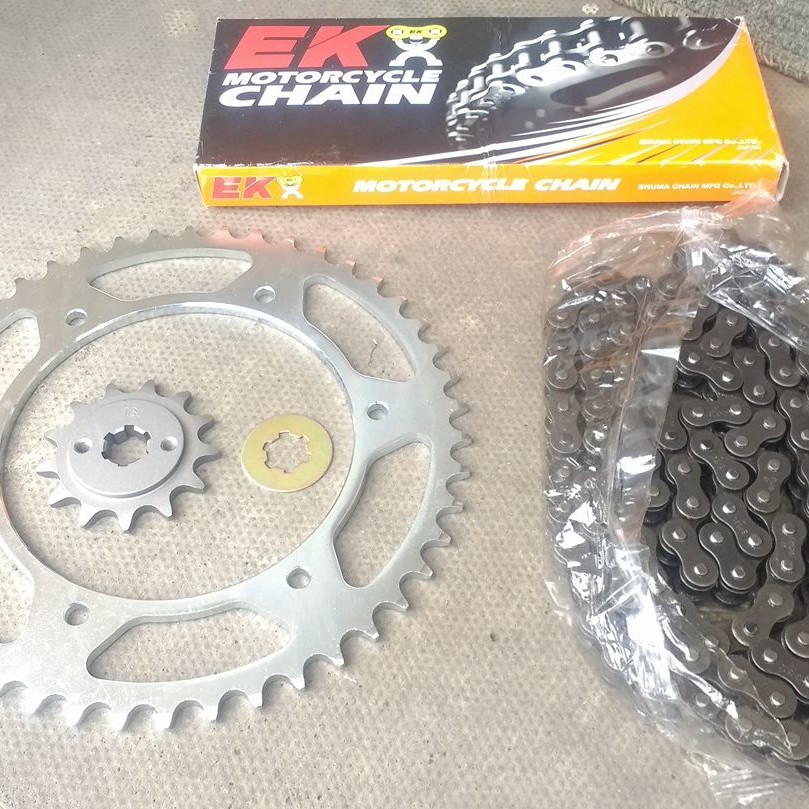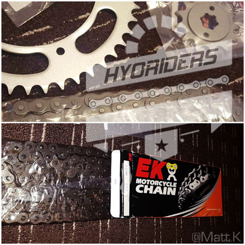 Bought to replace my 428 set. Big improvement in gearing and it’s lots smoother now! Bigger sprockets, chunkier chain = better looks. Really happy with the purchase, thanks Marcel!