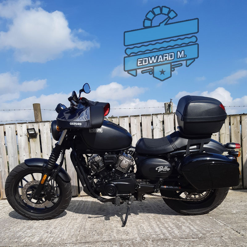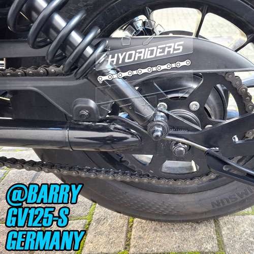 I was unsure if the expense would be worth the investment, after all the GV125S in it’s self is a decent cruiser and with the stock sprockets I could achieve 67 mph if the weather was on my side. I found it slow getting there all the same and at top end the bike would be hurting…..you could hear that she didn’t like being redlined. I contacted Hyo Riders and Marcel was so helpful in arranging the upgrade I needed. Once fitted I noticed I was up to speed much, much faster than previous and the gearing and revs seem more in tune. I find that 4th can be a cruising gear….enough pull to get you along and when needed take you to 60 mph , I only really use 5th for when I’m on open carriageways. I have achieved a top end speed with this conversion of 75 MPH and considering I am 12 1/2 stone , the bike has panniers and a topbox and I am fully kitted when riding, I think that is impressive from a upgrade. At this stage I’m sure I have covered most of what is needed to know…..and in fairness , the promises made as to what this 520 upgrade would deliver have been spot on. Well done Hyosung Riders 10/10. Again a big thank you to Marcel for all his help in this, you are a star….