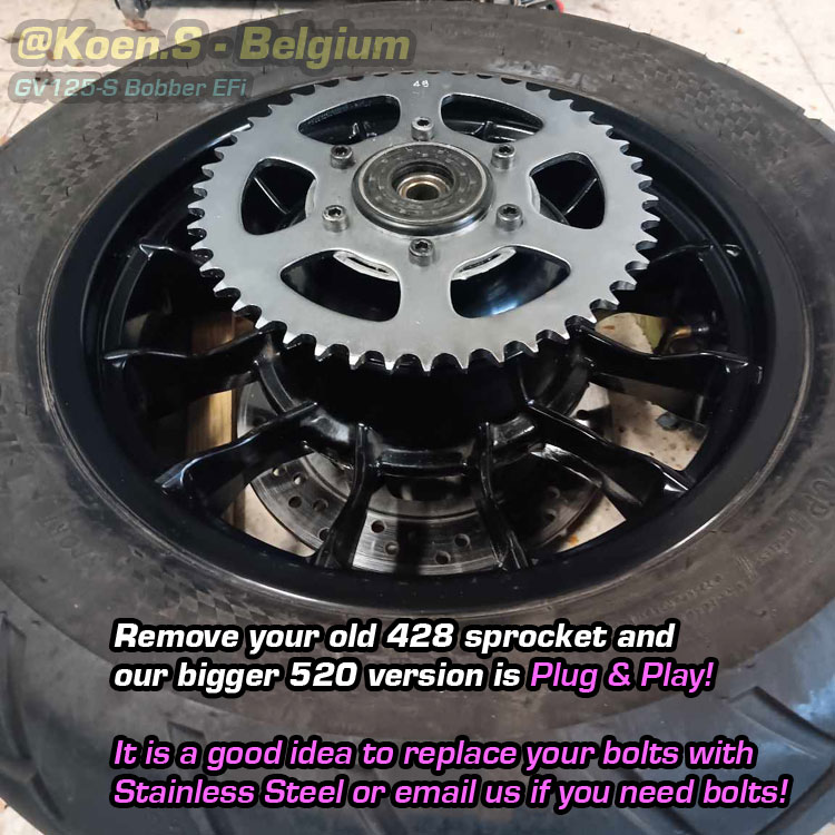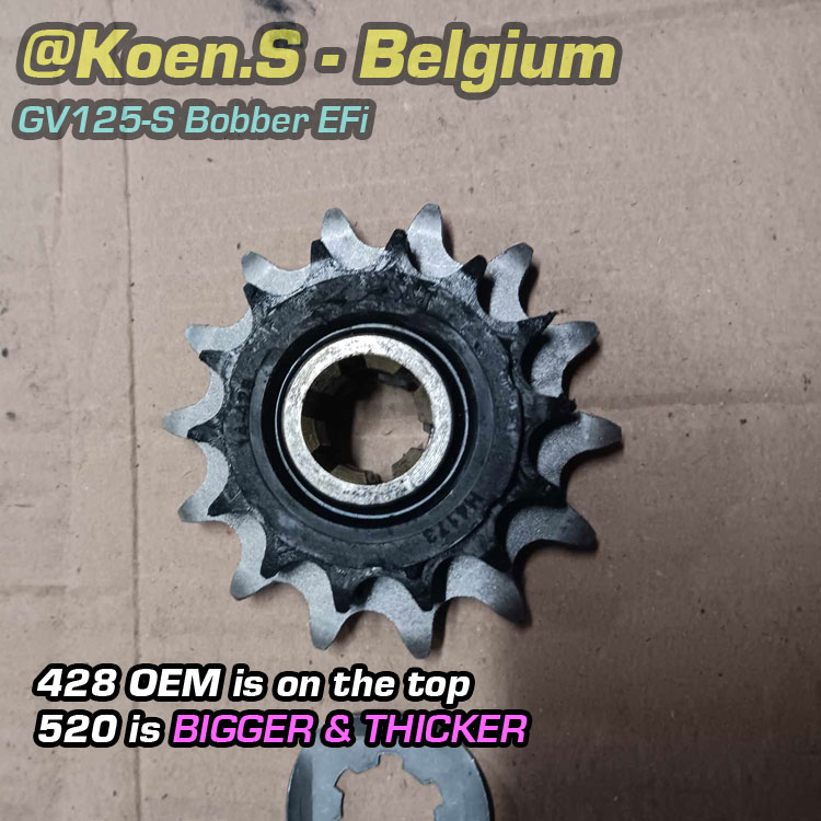 ![520 Upgrade Chain & Sprocket Kit [Conversion] - Hyosung GV125-S EFi Bobber 125 S - Image 23](https://i0.wp.com/hyoriders.club/wp-content/uploads/2022/03/hyosung-gv125s-bobber-upgrade-sprocket-striderxx2.jpg?fit=800%2C800&ssl=1)
