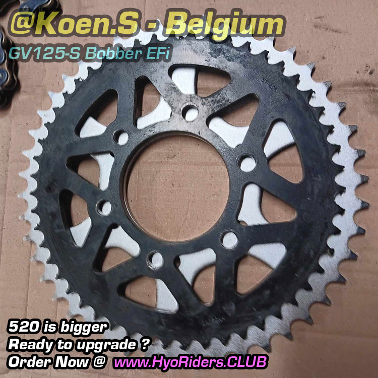 ![520 Upgrade Chain & Sprocket Kit [Conversion] - Hyosung GV125-S EFi Bobber 125 S](https://i0.wp.com/hyoriders.club/wp-content/uploads/2022/03/hyosung-gv125s-chain-kit-sprocket-aaron.jpg?fit=800%2C800&ssl=1)