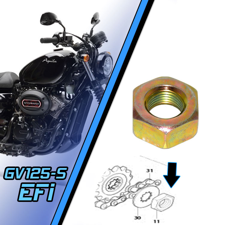 The front engine sprocket nut is a vital safety component of your GV125-S drivetrain. When you upgrade your chain and sprockets, you need fresh hardware. This is an OEM-grade component designed to handle the torque of your 125cc engine. Don’t risk performance loss or drivetrain failure with a worn or rusted original nut.