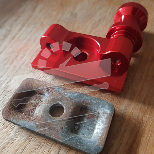 | Solid Billet Aluminium Far tougher than weak stock plates. |