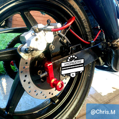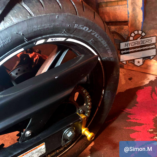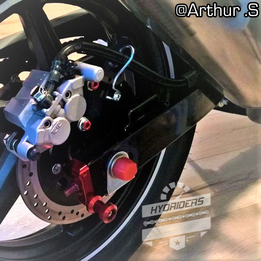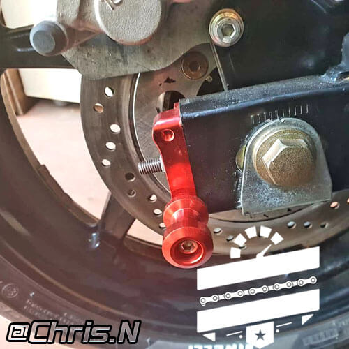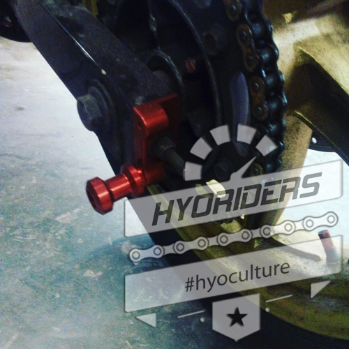 The original Hyosung rear chain adjuster plates are flimsy, flat metal stamped parts. They often bend and warp under normal chain tension, leading to poor wheel alignment—a serious safety issue.