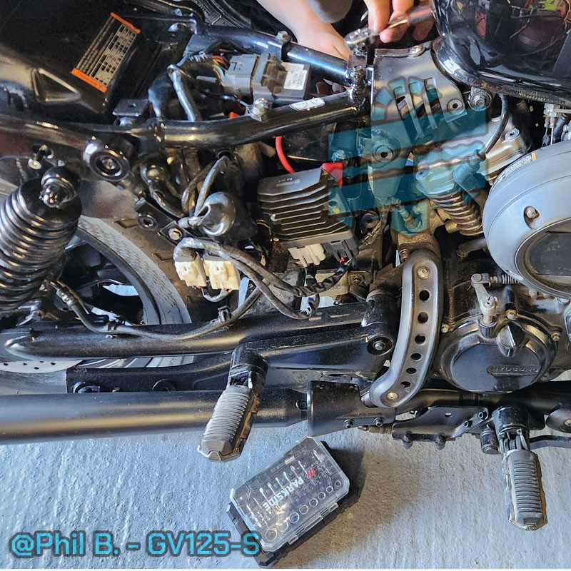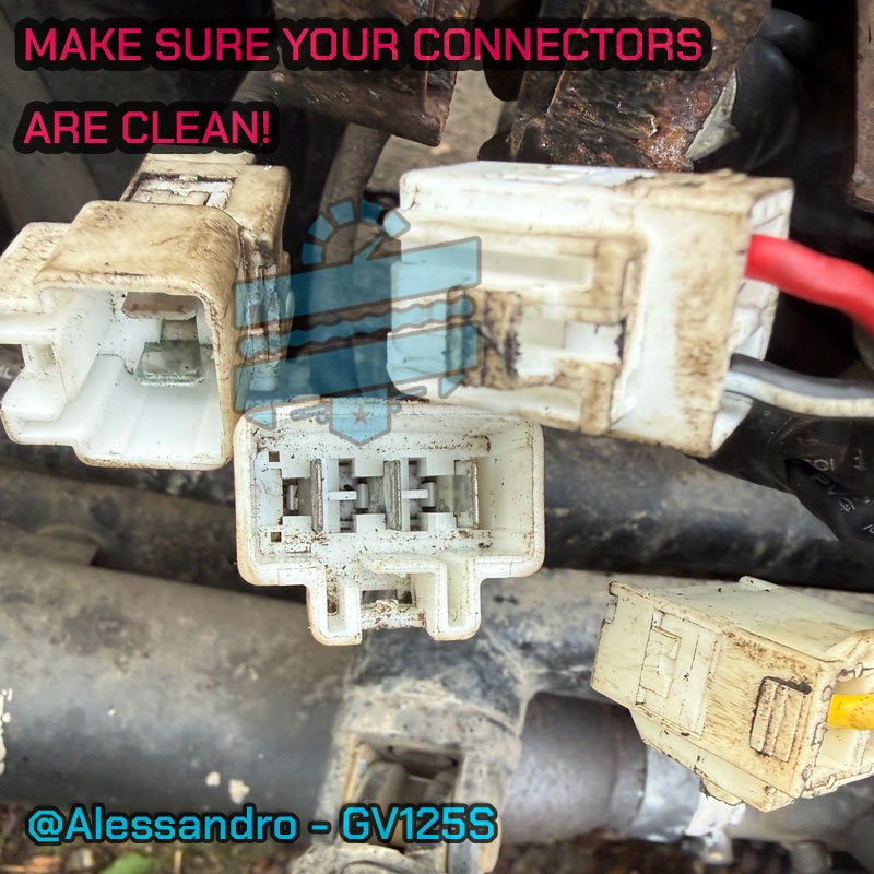 📸 Photo shows the female connectors on the main harness – Hyosung uses these from factory. Make sure your bike hasn’t been tampered with by a previous owner.
