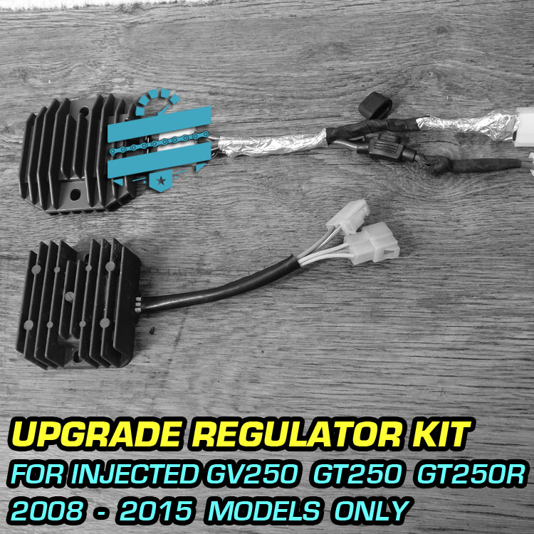 The original regulator/rectifier unit is a known weak point on 250cc Hyosungs. They often run hot and fail without warning, causing poor charging, unstable idle, and dim lights. Our aftermarket unit is a definitive performance upgrade, using modern technology and a superior heatsink to manage heat better than the “ancient” OEM diode tech. We’ve solved the fitment issue by including a custom, hand-built harness, making this a simple plug-and-play installation.