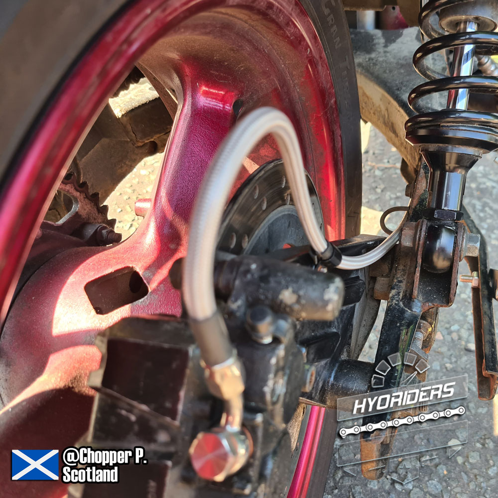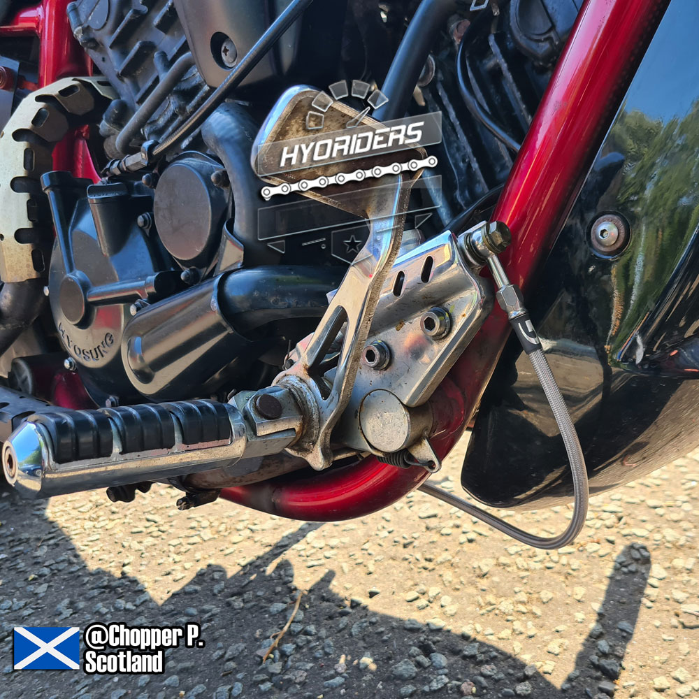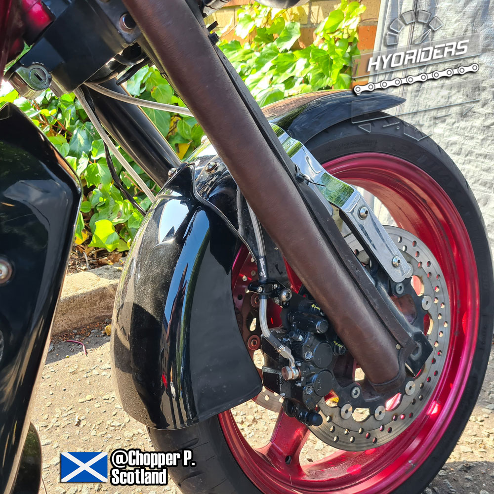 This brake system upgrade is the best value for money spent since I bought the bike. Dramatic improvements in overall stability, high-speed handling, and low-speed manoeuvring. The Hyoriders club may have saved my marriage.