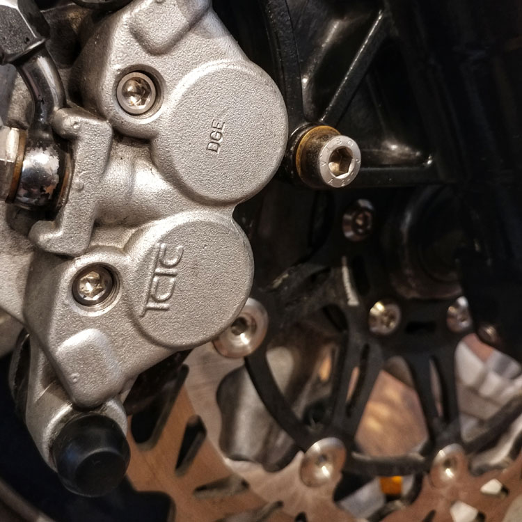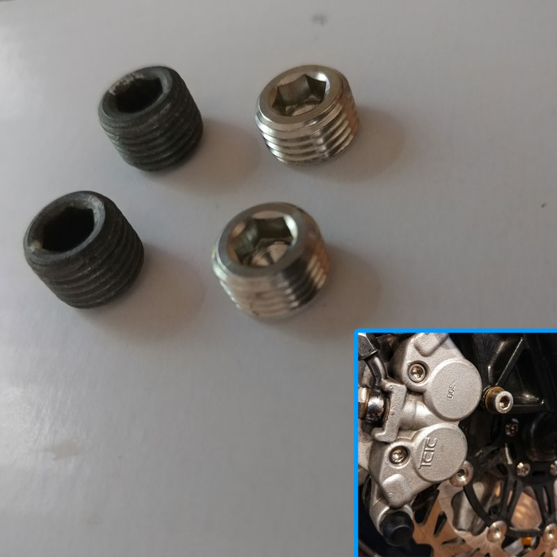 - Clean the Bore: Use a small wire brush or carb cleaner to remove old grit from the caliper threads before fitting the new stainless screws.