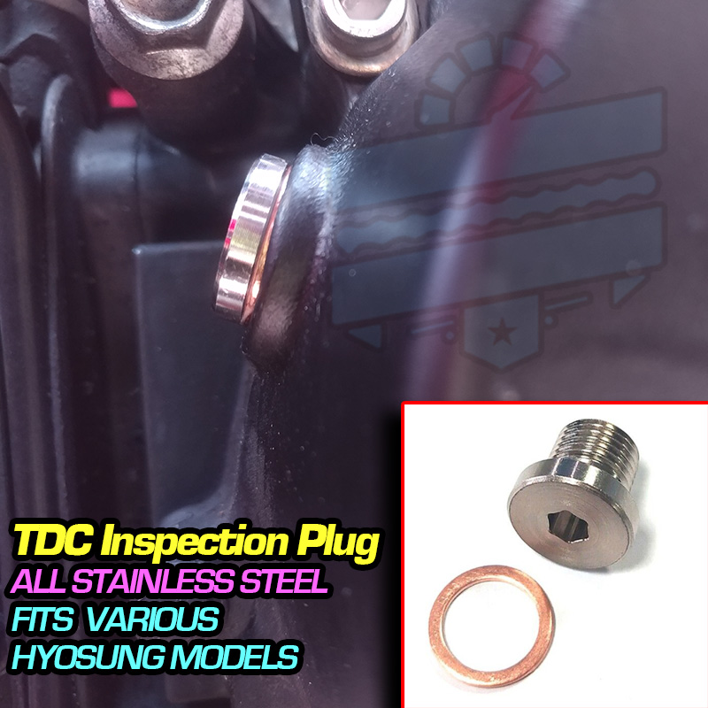 ![Stainless Steel Engine TDC Inspection Plug [Flywheel Viewer Cap] - Various Hyosung Models - Image 3](https://i0.wp.com/hyoriders.club/wp-content/uploads/2023/11/Hyosung_GT650R_TDC_PLUG.jpg?fit=768%2C768&ssl=1)